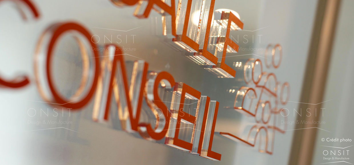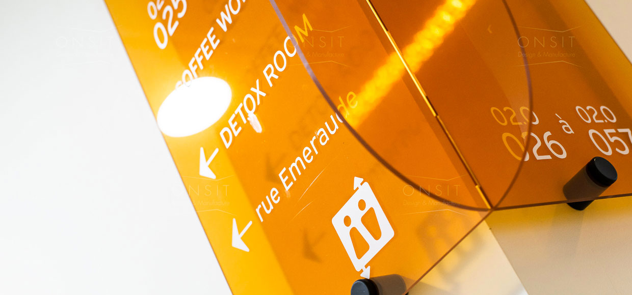 Le développement d’une signalétique originale vise à s’intégrer parfaitement à votre architecture comme à votre identité. En prenant en compte votre charte graphique, votre mobilier et la décoration de vos espaces, notre démarche à pour objectif de développer votre signalétique pas à pas.